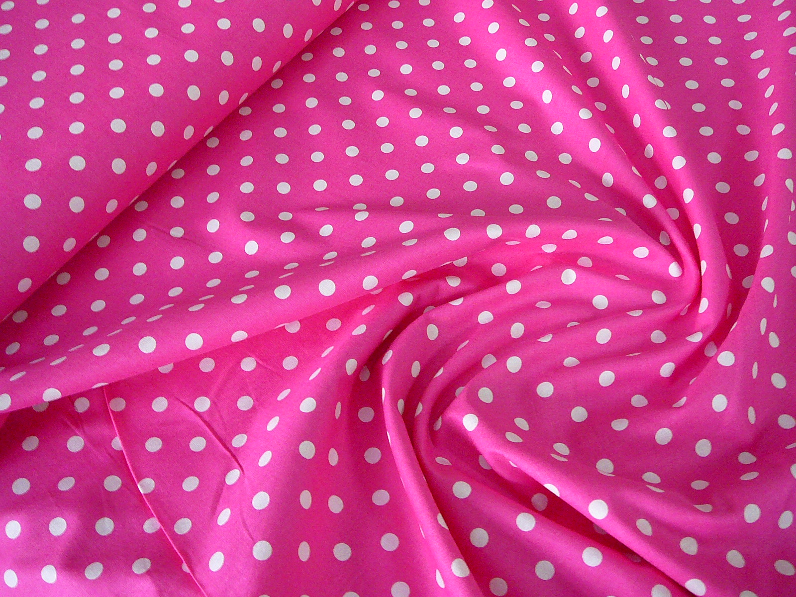 oděvní - bílý puntík na sytě růžové - šíře 140cmskladem 7 ks90 Kč/ ks